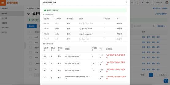 部分網(wǎng)站解析添加了@的CNAME解析后,無法再添加郵箱的MX解析以及SPF對應(yīng)的TXT記錄。
